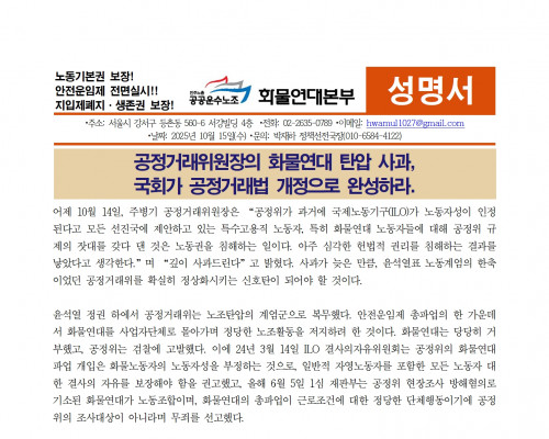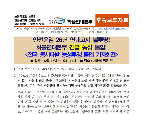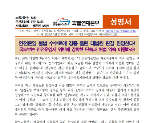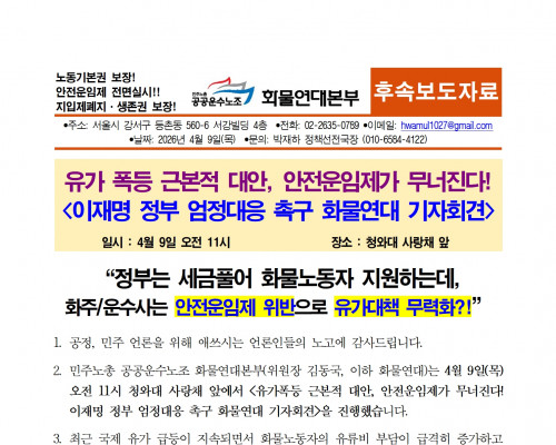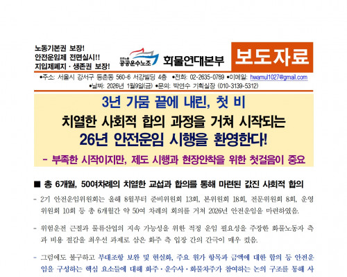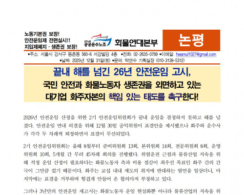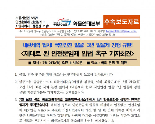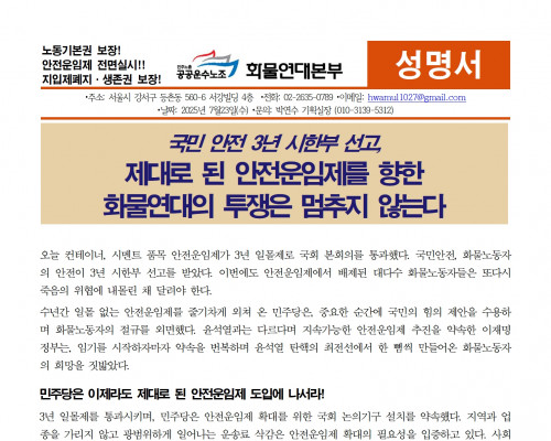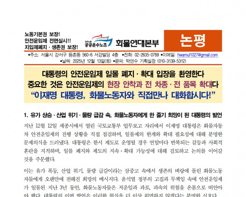 윤석열의 노동계엄령 해소, 안전운임제 재입법이 시작입니다.