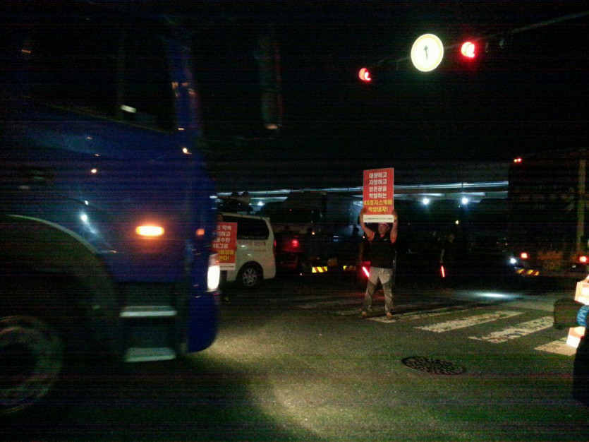 화물연대 조합원들이 항의하며 가해 화물차 기사를 찾아와 사과시킴