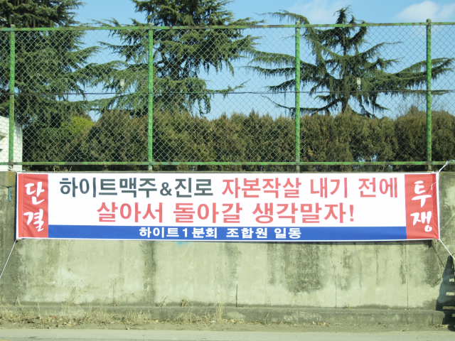 그리고 우리 동지들이 일터로 돌아가는 그날까지 하이트맥주및 진로소주 불매운동에 적극동참하여 주실것을 당부드립니다.