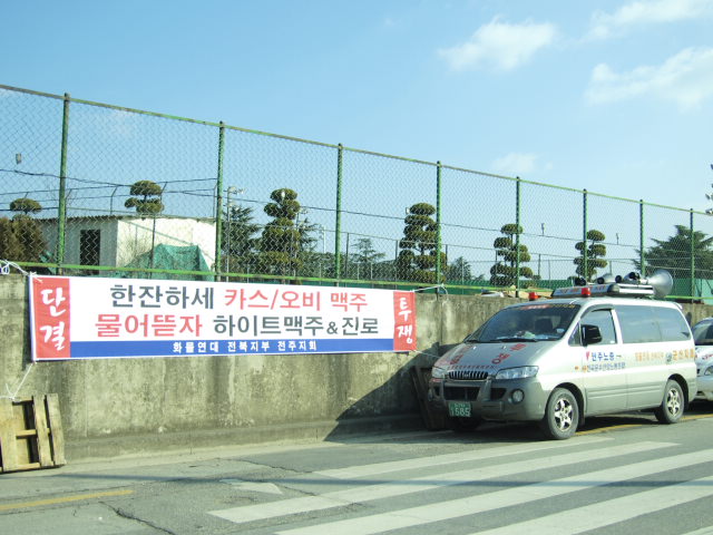 전주지회 하이트 1분회 동지들이 2008년 12월 31일부로 전원 계약해지를 당해서 정든 일터에서 쫒겨났습니다.