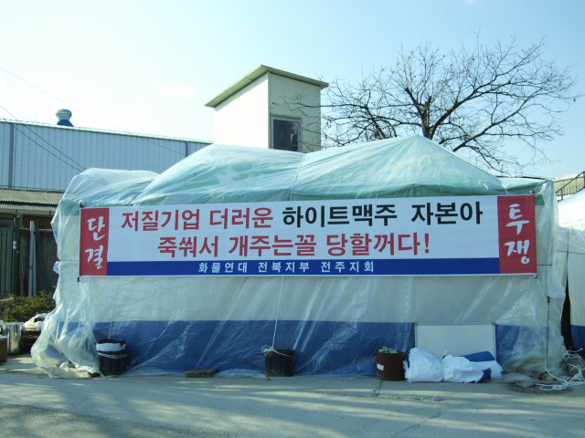 이 엄동설한에 가정에도  못들어가고 힘들고 외로운 투쟁을 하는 하이트 동지들이 하루빨리 일터로 돌아갈 수 있도록