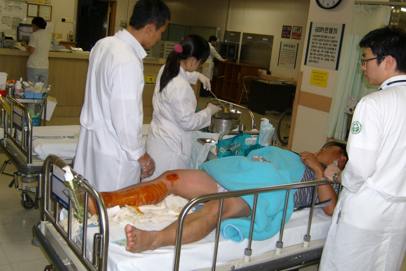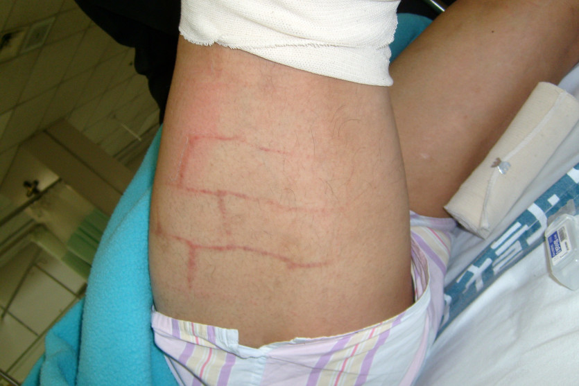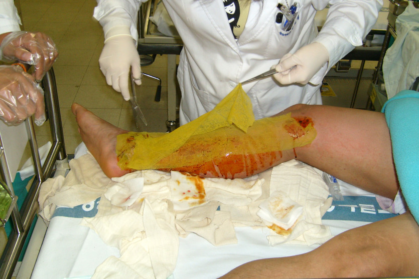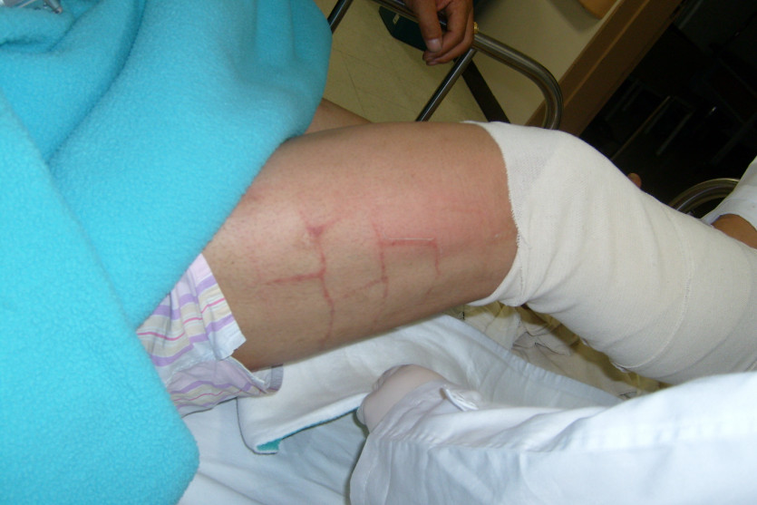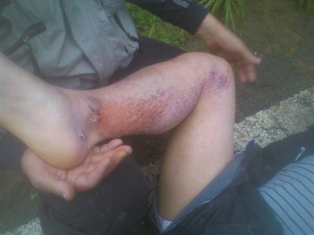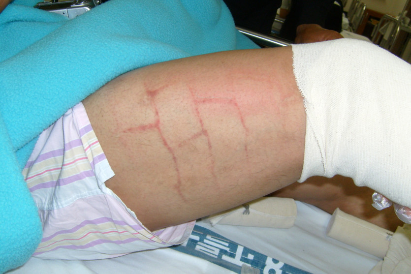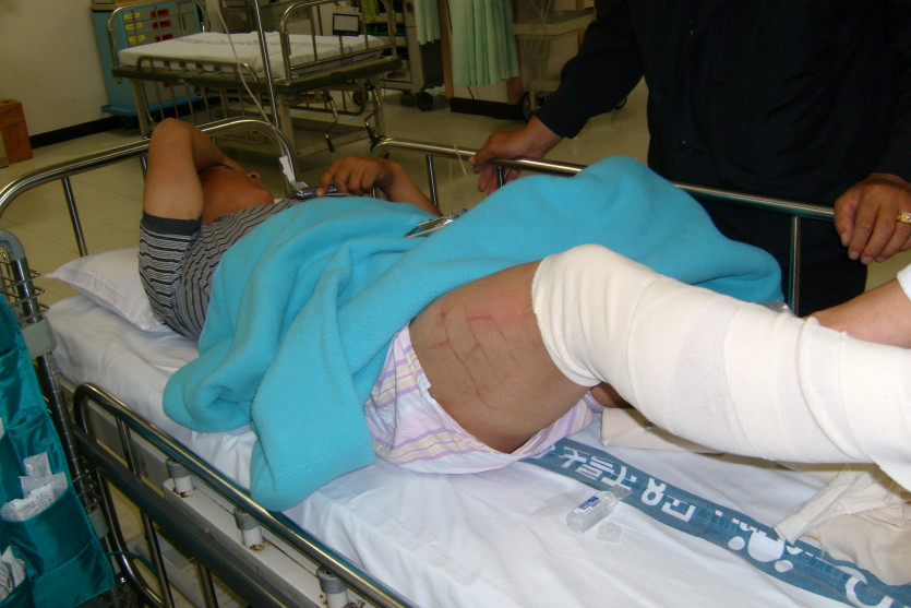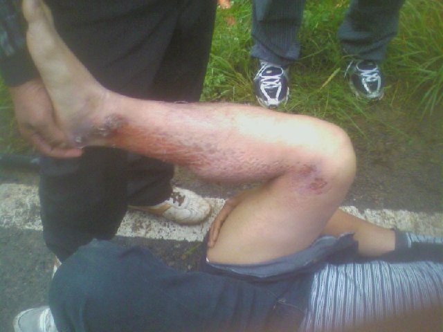 [전남지부 ] 여수조합원 부상사진 " 타이어자국 선명합니다"
