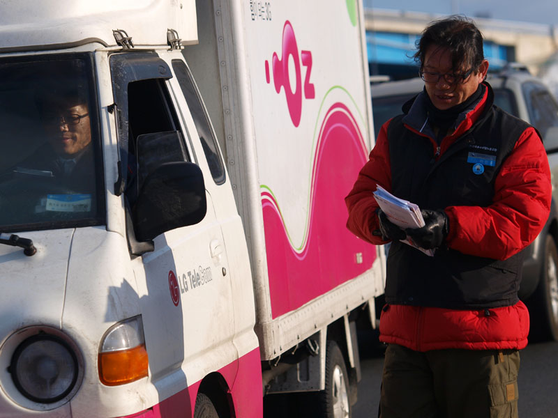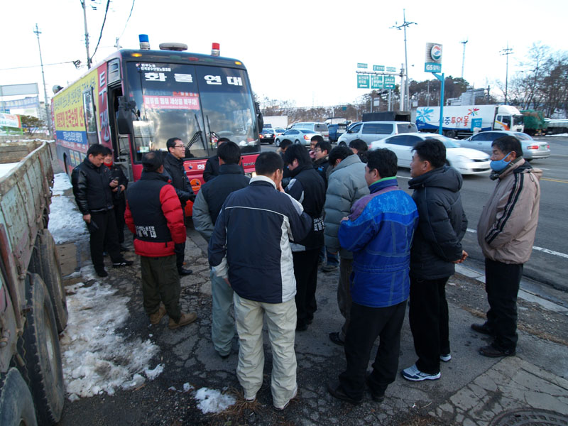 오전 9시부터 진행된 선전전은, 함박눈이 쏟아지고 매서운 추위에도 아랑곳 하지 않고 목포지회장님을 비롯한 목포지회 많은 동지들이 '운송료 인하 저지', '운송료 체불 근절', '번호판 탈취 근절'의 내용으로 가열차게 선전전을 진행하였습니다. 목포지역 선전전을 끝마치고 동지들과 함께 한 점심은 정말 꿀맛이었습니다.