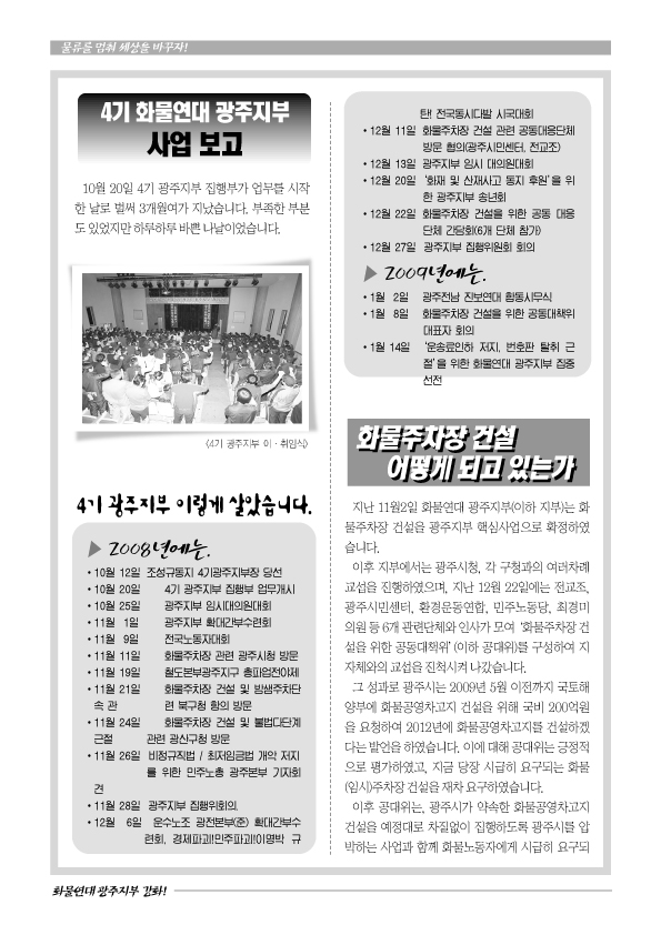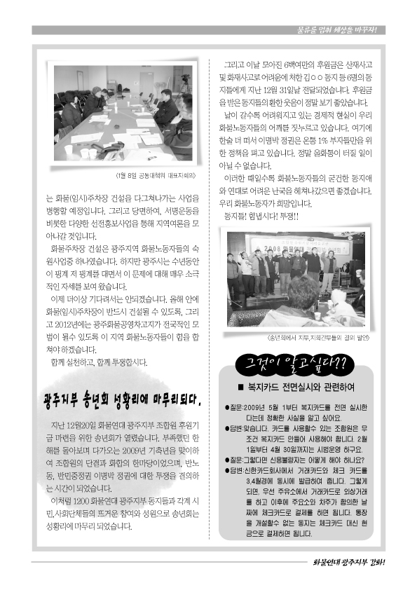 <화물광주>는 매달 1회 발간할 계획이며, 다음호부터는 지회 및 분회 소식 그리고 동지들이 직접 쓴 글을 담을 생각입니다. 동지들의 많은 관심과 참여 부탁드립니다.