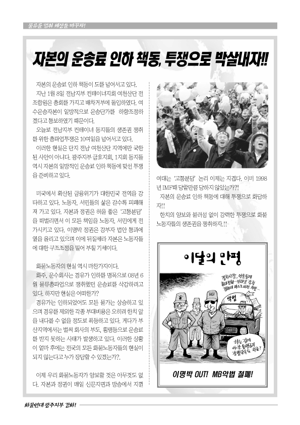 화물연대 광주지부 소식지 <화물광주>를 발간하였습니다.