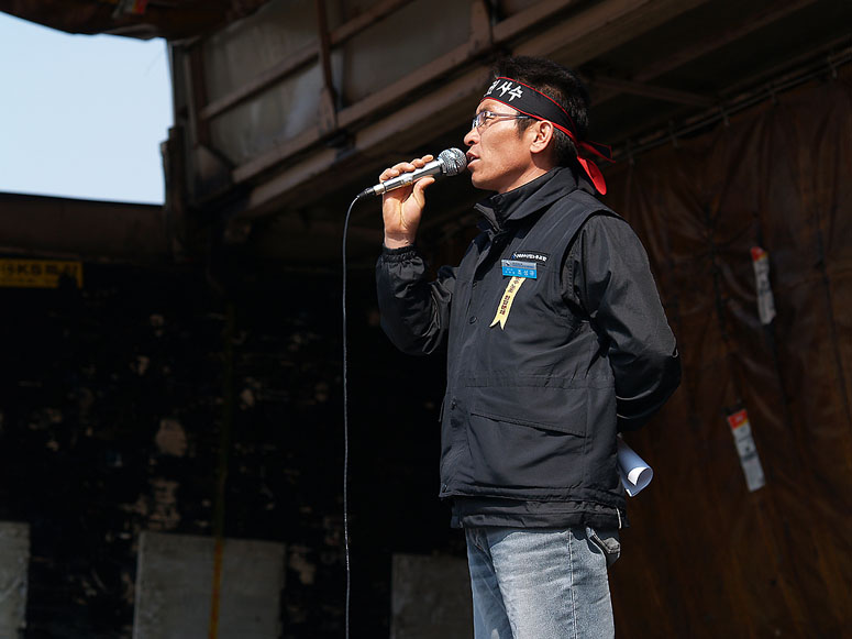 오승석 수석부본부장님은 격려사에서 대한통운 자본의 화물노동자들에 대한 집단해고와 운송료 인하 책동은 절대 용납할 수 없음을, 그리고 전국의 화물노동자들과 함께 대한통운 자본을 박살내는 투쟁을 전개하겠다는 결의를 밝혀 주었습니다. 그리고  각 지역의 지부장 동지들 역시 대한통운의 문제는 단지 광주만의 문제가 아님을 강조하고 향후 대한통운 박살 투쟁에 더욱 강력한 연대를 약속하였습니다.