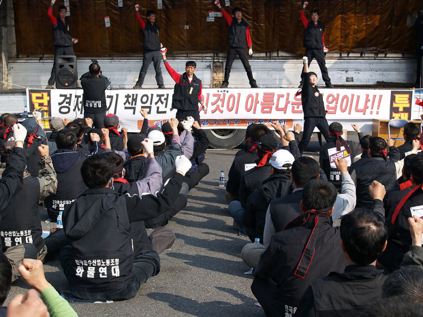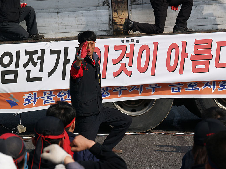 현재 화물연대 광주지부는, 대한통운 자본이 우리와 교섭할 의지가 전혀 없다는 판단을 내렸으며 향후 더욱 강력하고 확실한 투쟁을 조직하고 있습니다.