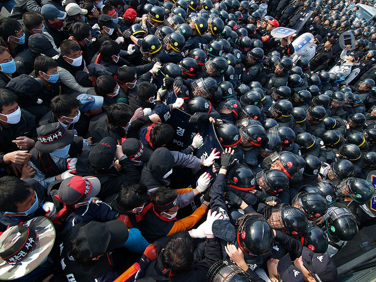 집회가 끝나고 대한통운 진격투쟁이 가열차게 전개되었으며, 500여명의 동지들은 한치의 물러섬 없이 대한통운을 박살내겠다는 각오로 영웅적으로 투쟁하였습니다.