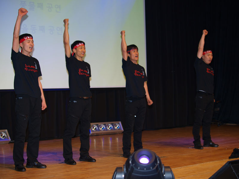 1부에서는 다양한 문화행사가 진행되었습니다. 율동패<민들레>, 풍물패<운수대통>, 노래패<질풍노도> 동지들이 그동안 갈고 닦은 솜씨를 한껏 뽐내었으며, 조합원 동지들은 우레와 같은 박수와 함성으로 화답하였습니다.