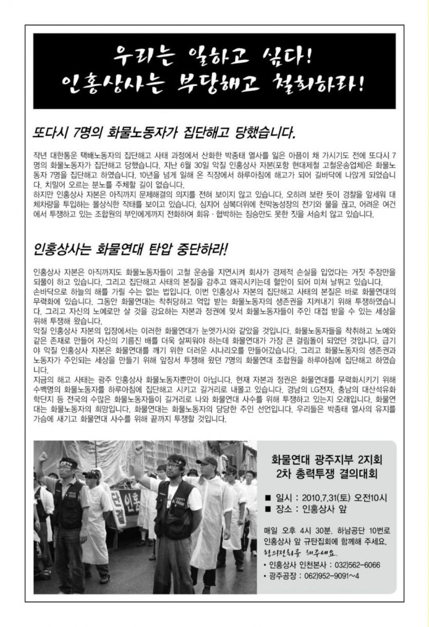 인홍상사 복직투쟁 홍보전단지