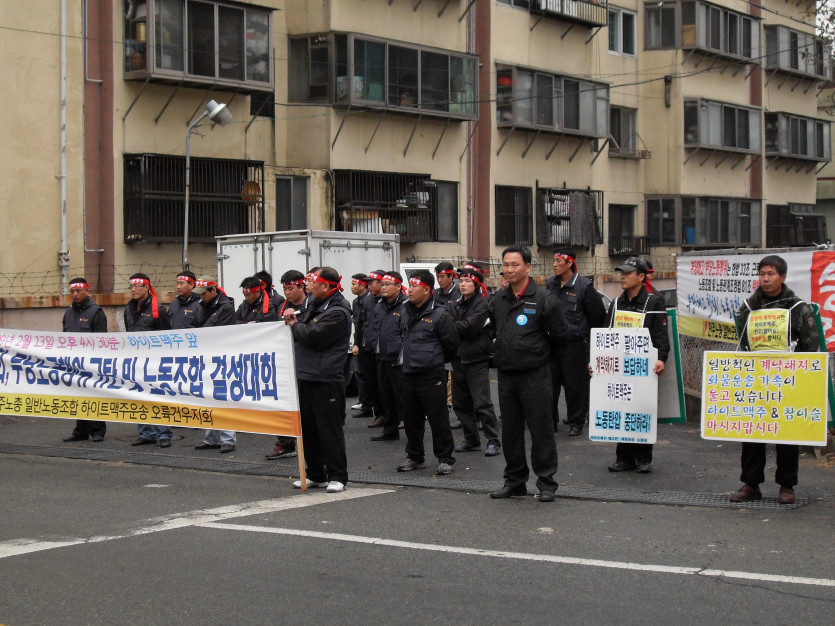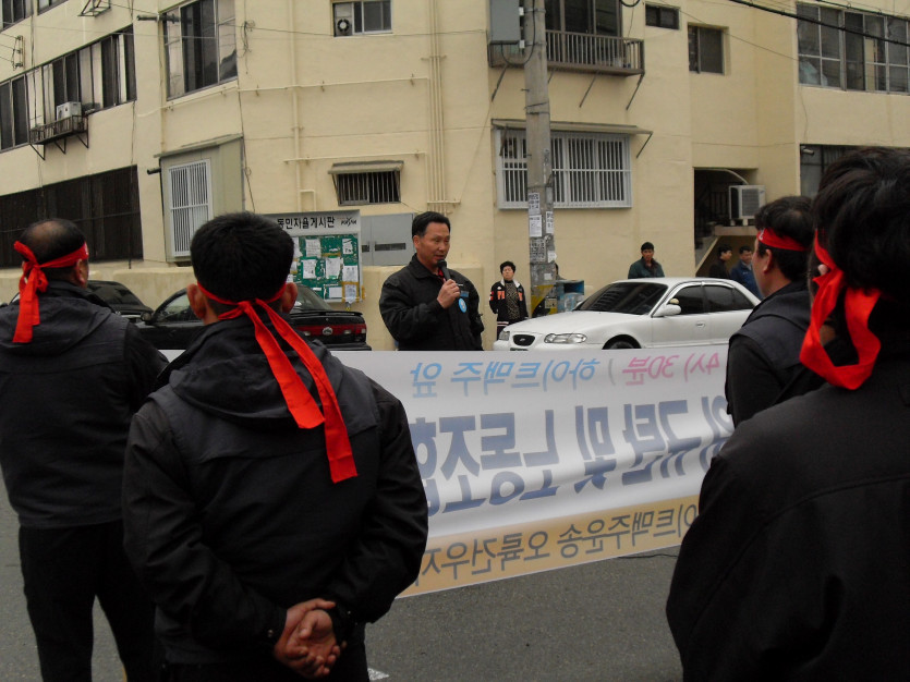 오륙건우지회(일반노조) 오륙건우기사 들은 오륙운수에서 일방적인 부당해고와 추우개선을위해 2/13일부로 일반노조에 가입을하여 결성대회을 가졌다