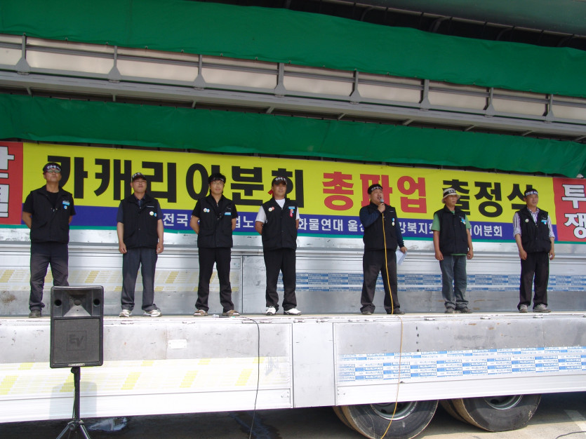 카캐리어 조합원들은 이 생존권 사수투쟁에서 승리하고 화물연대