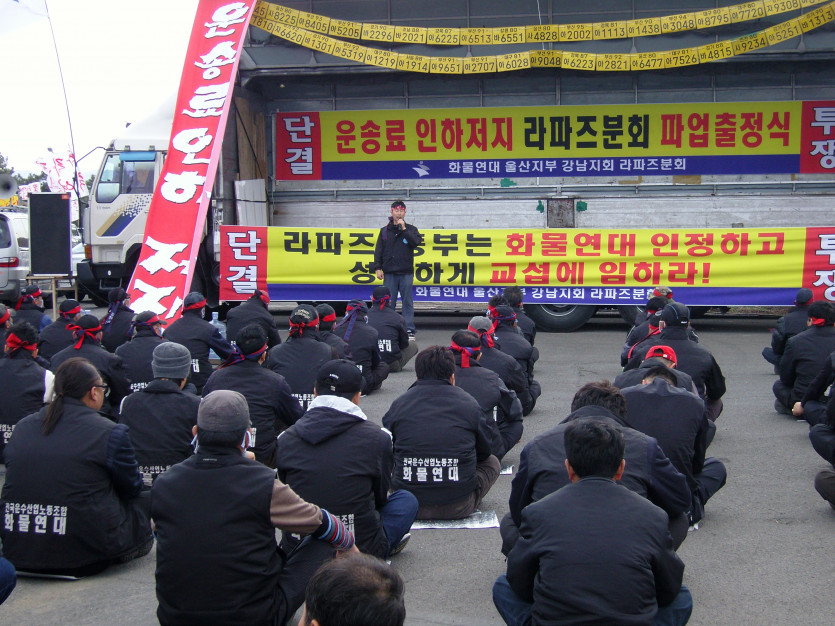 조합원동지들의 힘찬 연대투쟁 감사드리며 어려운 시기에 화물연대 동지들의 단결투쟁만이 생존권을 사수하고 인간답게 사는 길임을 다시한번 새기는 기회가 되었으면 합니다. 단결!!