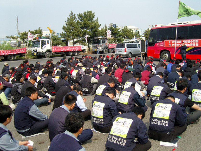 조합원들의 차량이 공장밖에서 하루 종일 상차대기 중인데 파업중에 대체수송을 담당했던 운송사들에게 용차를 배차하고 조합원들이 1회전밖에 못하고 있는데도 용차들에게 2~3회전씩 돌리고 있어도 기다리고 있었습니다.