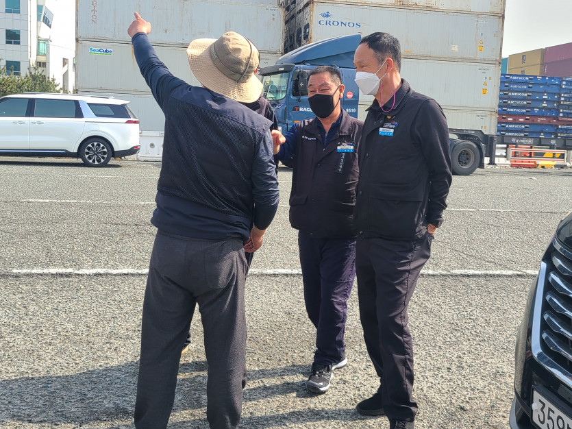 금일은 신항 일때에서 화물노동자가 하지말아야할 업무 문 개폐, 검수 수리, 세척, 냉동코드 제거 등 선사, 터미널 운영사 상대로 투쟁을선포하고 현재 선전전을 전개하고 있습니다.