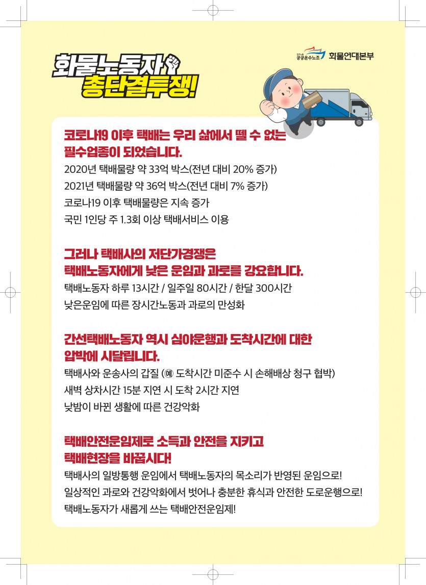 220330~ _전국순회 선전전 선전물 페이지 정보 작성자 화물연대본부 댓글 0건 조회 919회 작성일 22-04-21 17:35 목록 본문 이전글220402_화물노동자 투쟁선포대회 22.04.21 다음글220321_기름값 폭등에 따른 화물노동자 대책마련 촉구 화물연대 기자회견 선전물 22.04.21 댓글 0 댓글목록 등록된 댓글이 없습니다.