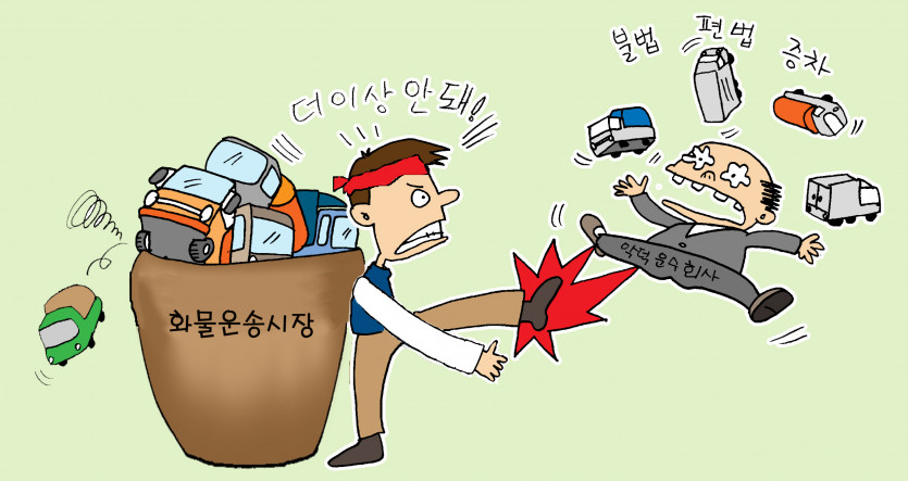 화물연대 대정부 요구안 관련 만화 일러스트 입니다.