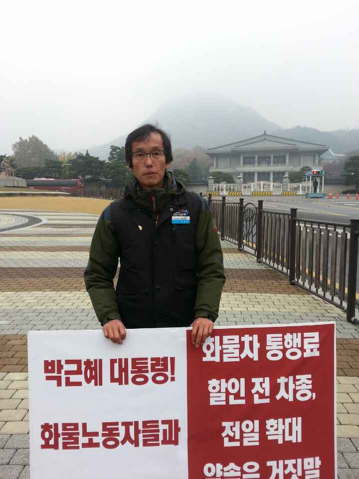 화물연대, 청와대 앞 일인시위 4일차