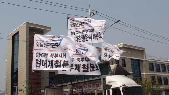 2014년 07월 14일 오후 2시 당진 현대글로비스 정문앞 "화물노동자 생존권" 보장 기본법안 통과 촉구를 위한 총력투쟁 결의대회 개최