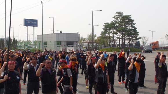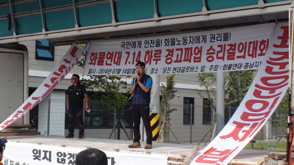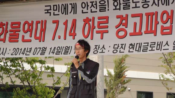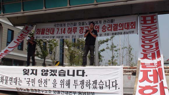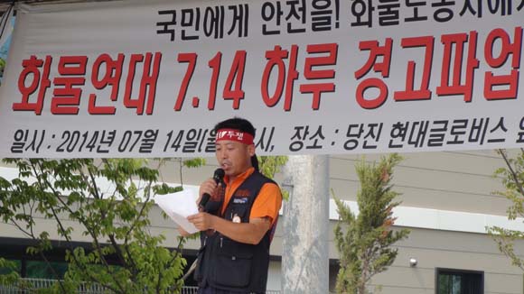 2014년 07월 14일 오후 2시 당진 현대글로비스 정문앞 "화물노동자 생존권" 보장 기본법안 통과 촉구를 위한 총력투쟁 결의대회 개최