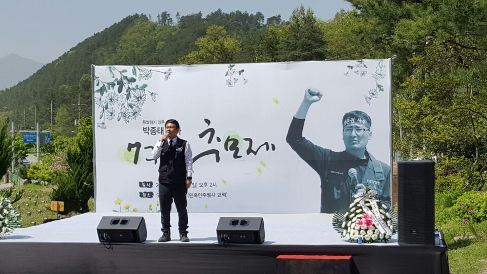 4월 24일 오후 2시 박종태열사 7주기 추모제를 개최하여 조합원과 광주지역 노동자들, 그리고 부경대학교 민주동문회 동지들과 함께 열사정신을 기리고, 산자의 몫을 다하자는 결의를 다졌습니다.