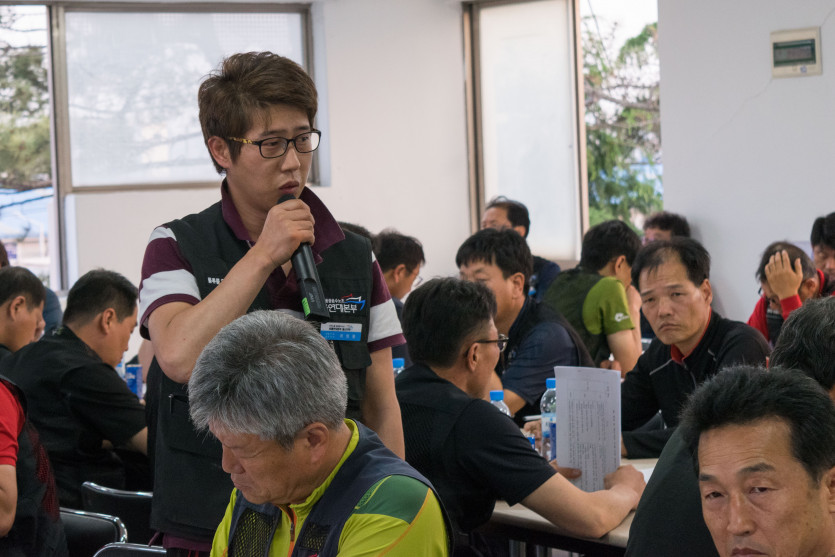 총회에서 2016년 하반기 법 개정 및 제도 개선 투쟁에 대한 박원호 본부장님의 설명 이후 참가자들의 질문과 찬반 토론이 진행되었습니다.