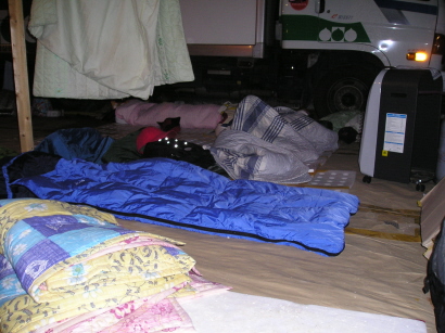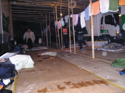 야간엔 차량돔 안에서 집회대신 "우리는 노동자다"라는