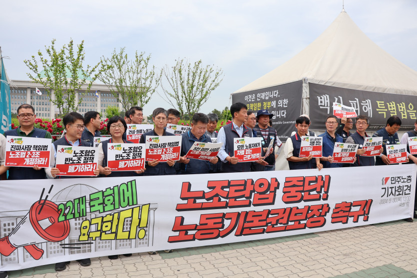 240530_노조탄압 중단! 노동기본권 보장촉구 민주노총 기자회견 페이지 정보 작성자 화물연대본부 댓글 0건 조회 757회 작성일 24-05-30 17:42 목록 본문 240530_노조탄압 중단! 노동기본권 보장촉구 민주노총 기자회견 이전글240530_노동기본권 쟁취! 민주노총 결의대회 24.05.30 다음글20240529_화물연대 총력투쟁 선포 기자회견 24.05.30 댓글 0 댓글목록 등록된 댓글이 없습니다.