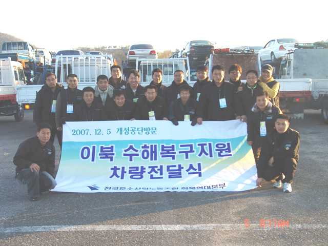 지난 12월5일 북한 수해복구 차량지원 방문단 사진입니다