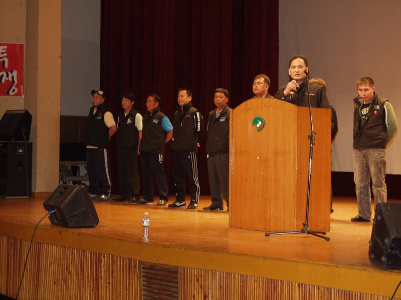 휴일 쉬지도 못한 채 총회에 참석해주신 대경지부 조합원동지여러분께 대단히 감사하다는 인사를 올립니다. 그리고 바쁜 일정에도 불구하고 총회자리를 빛내고 우리지부 조합원동지들께 힘과 용기를 실어주시기 위해 함께 해주신 화물연대 김달식 본부장님, 운수노조 김종인 위원장님, 민주노총 이석행 위원장님, 울산지부장님과 중앙위원동지들, 한국 최초 환경미화원 노동자 출신 국회의원 민주노동당 홍희덕 동지님, 행사를 지원해 주신 포항지부 정혁표 동지님, 민중가수 지민주 동지님, 몸짓패 민주노총 대구본부 자주통일실천단 '통일나래'동지들 모두 정말 고맙습니다.