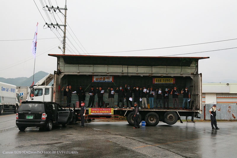 오직 단결하여 정당한 운송료를 받으며 인간답게 일하는 화물노동자의 권리를 찿읍시다..