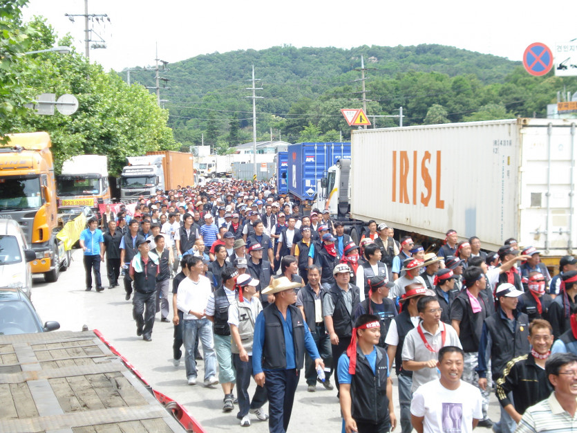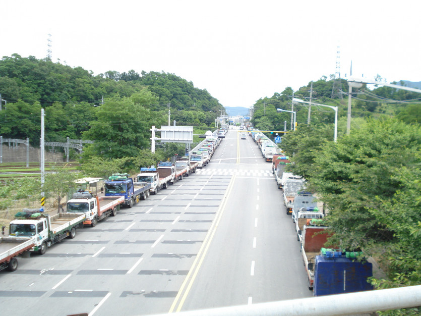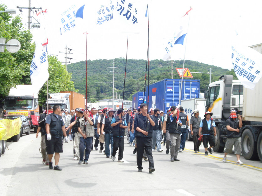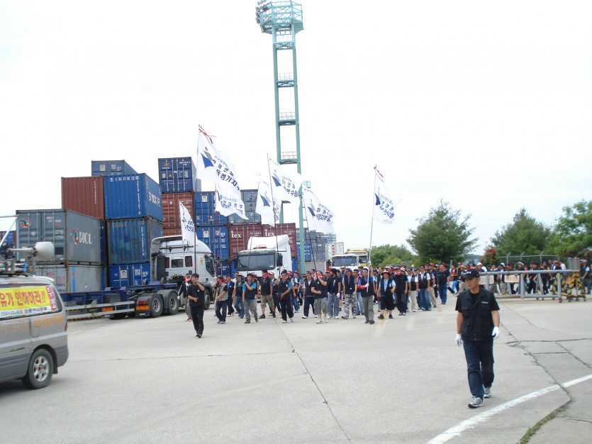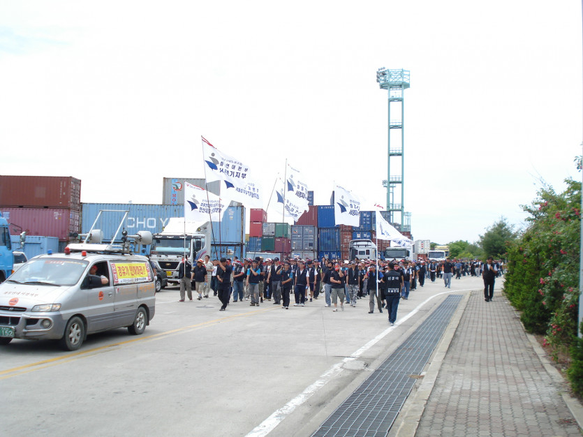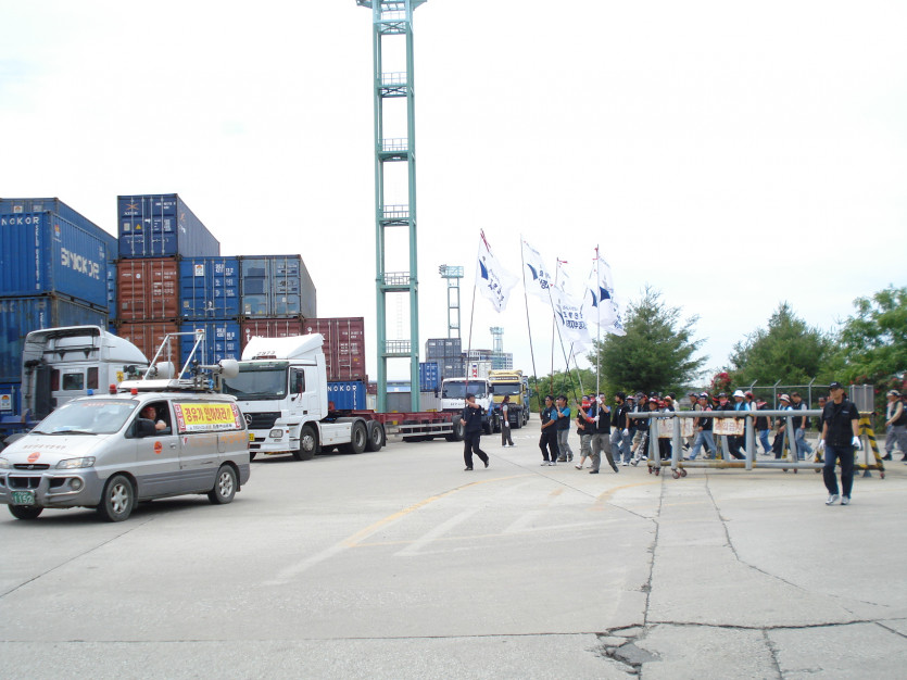 6월16일 오전 10시부터 경인아이씨디 1기지입구에서 서울경기지부조합원400여명과 화물공차정보 비조합원100여명이 집회를 열고 경인아이씨디 2기지안에까지 행진하였습니다.