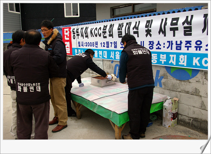 오늘은 서경지부 경사날입니다 동부지회가 오늘 KCC분회 발대식에 힘입어 동부지회의 실체가 보이는날이었습니다