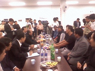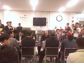 지난 16일 오후 국토해양부장관이 인천시 관계자와 항만공사관계자, SK 사장을 대동하고 인천SK화물차 휴게소를 방문하여 화물연대 인천지부장과 몇몇 화물 노동자들과 간담회를 진행하였습니다.