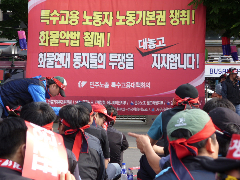 부산역 투쟁 현장에 모인 화물노동자 여러분 대단히 감사합니다.