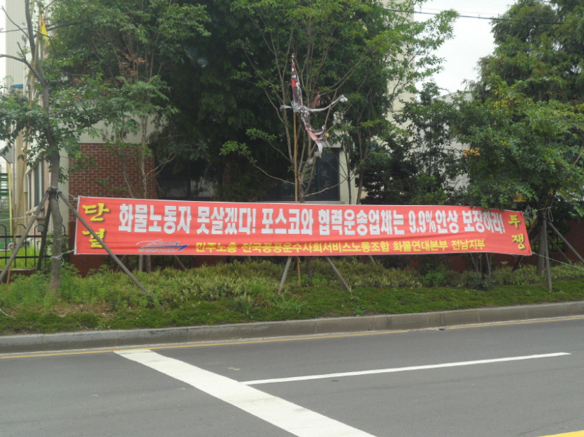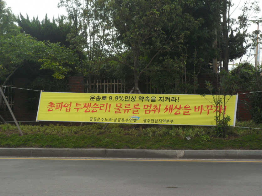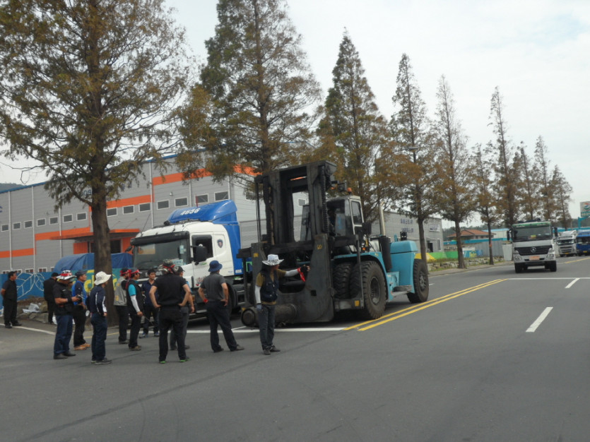 개소리 하면서 경찰 캄보이하에 밀고 나옵니다! 어제도 오늘도 화물연대는 공권력과 쪽제비에게 비참하게 당하고 있습니다. 광양으로 오셔서 함께 해주실 동지님들을 기다립니다 ! 동지님들이 오실때 까지 죽기를다해