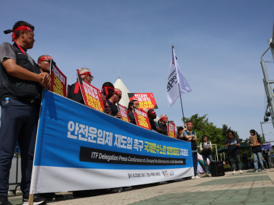 230923_안전운임제 재도입 촉구 국제운수노련 방한대표단 기자회견