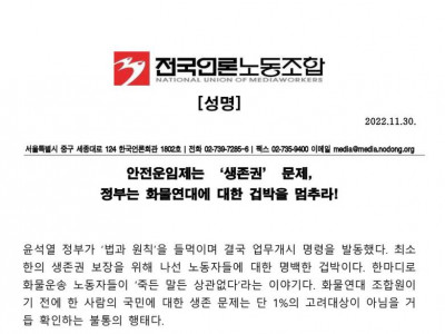 [전국언론노동조합]_안전운임제는 '생존권' 문제, 정부는 화물연대에 대한 겁박을 멈추라!