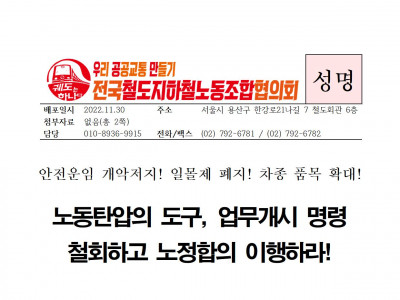 [궤도협의회]_노동탄압의 도구, 업무개시 명령 철회하고 노정합의 이행하라!