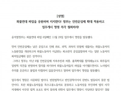 [사무금융노조 보험설계사지부]_화물연대 파업을 응원하며 지지한다! 정부는 안전운임제 확대 적용하고 업무개시명…