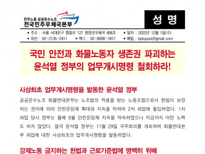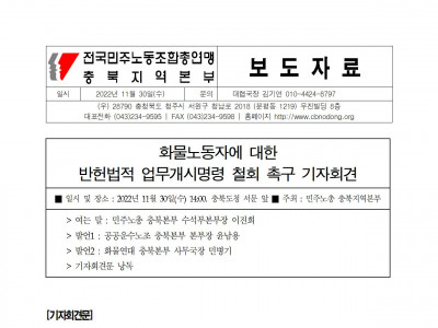 [민주노총 충북지역본부]_화물노동자에 대한 초법적인 업무개시명령을 철회하라!