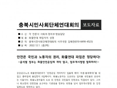 [충북시민단체연대회의]_안전은 국민과 노동자의 권리, 화물연대 파업은 정당하다!