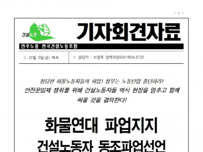 [전국건설노동조합]_화물연대 파업지지 건설노동자 동조파업선언