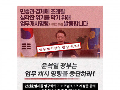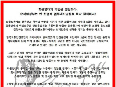 [전환]_윤석열 정부는 업무개시명령을 중단하라! 안전운임제를 영구화하고 노조법 2,3조 개정을 통해 노동자의…