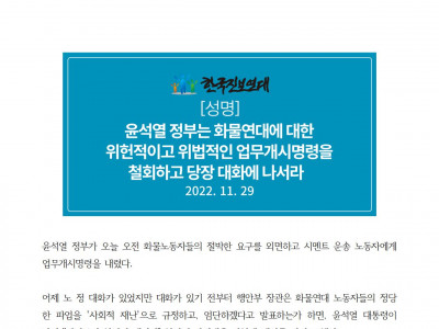 [한국진보연대]_윤석열 정부는 화물연대에 대한 위헌적이고 위법적인 업무개시명령을 철회하고 당장 대화에 나서라