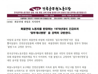 [전국공무원노조]_화물연대 노동자를 탄압하는 1970년대식 긴급조치 '업무개시명령'을 강력히 규탄한다.