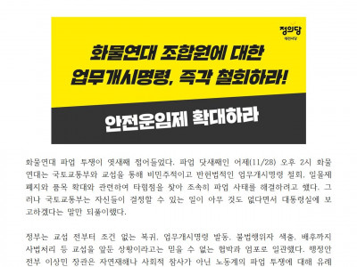 [정의당 대전시당]_화물연대 조합원에 대한 업무개시명령, 즉각 철회하라!