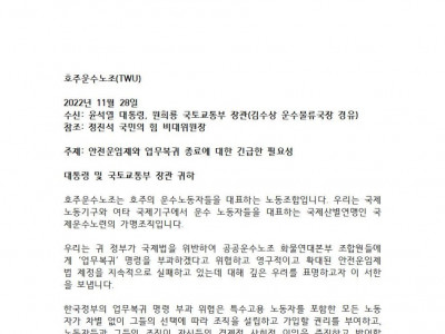 [호주운수노조]_안전운임제와 업무복귀 종료에 대한 긴급한 필요성