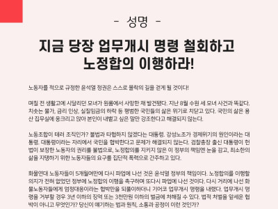 [민주노총 광주지역본부]_정당한 노동자의 투쟁에 ‘업무개시명령’ 위헌적 칼날 들이댄 후안무치한 윤석열 정부를…