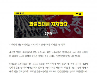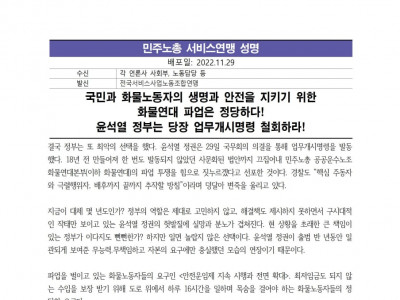 [민주노총 서비스연맹]_국민과 화물노동자의 생명과 안전을 지키기 위한 화물연대 파업은 정당하다! 윤석열 정부…
